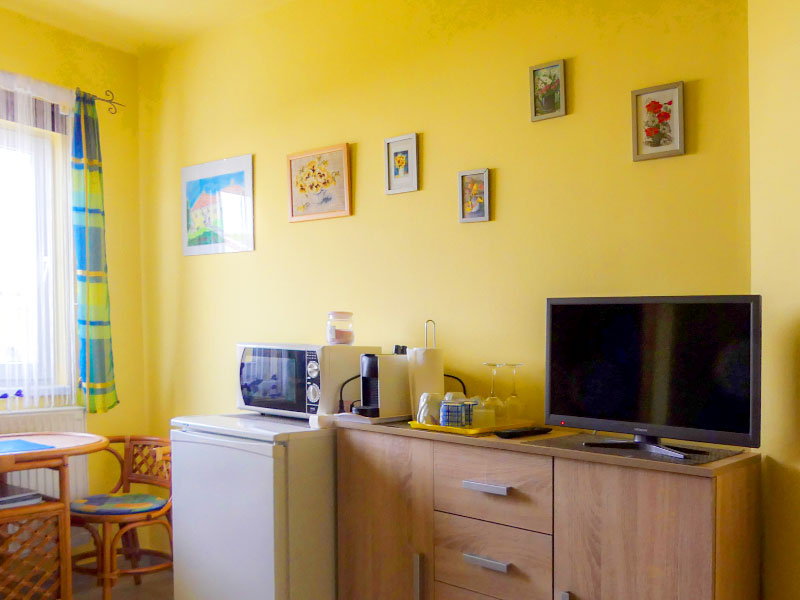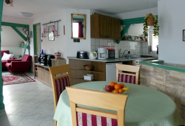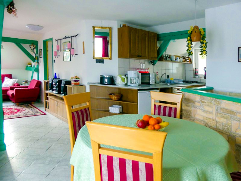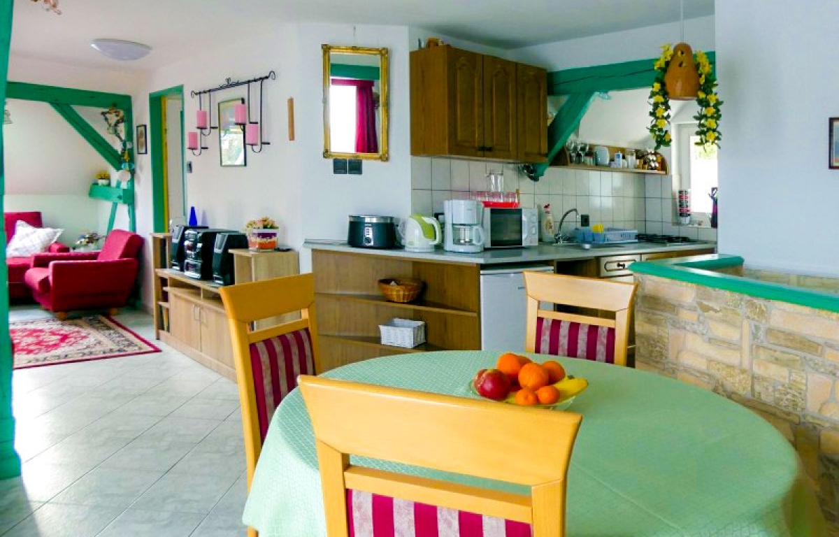 Vendégházunkban egy kétágyas szoba, egy négy fős, és egy hat fős apartman található. Az apartmanok saját, teljesen felszerelt konyhával rendelkeznek.