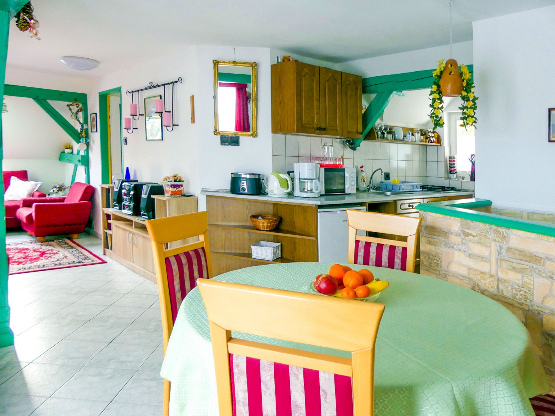 A vendégházban egy kétágyas szoba és két apartman található. Az apartmanok saját konyhával rendelkeznek.